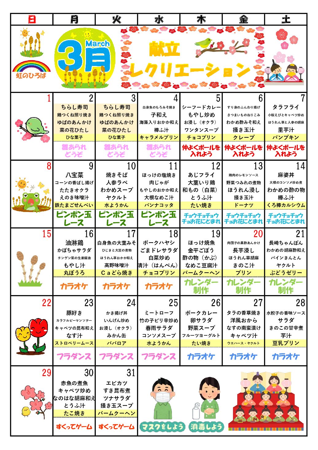 虹のひろばでは、毎月「虹のひろばだより」と「イベントカレンダー」を発行しております。画像をクリックしてご覧ください。