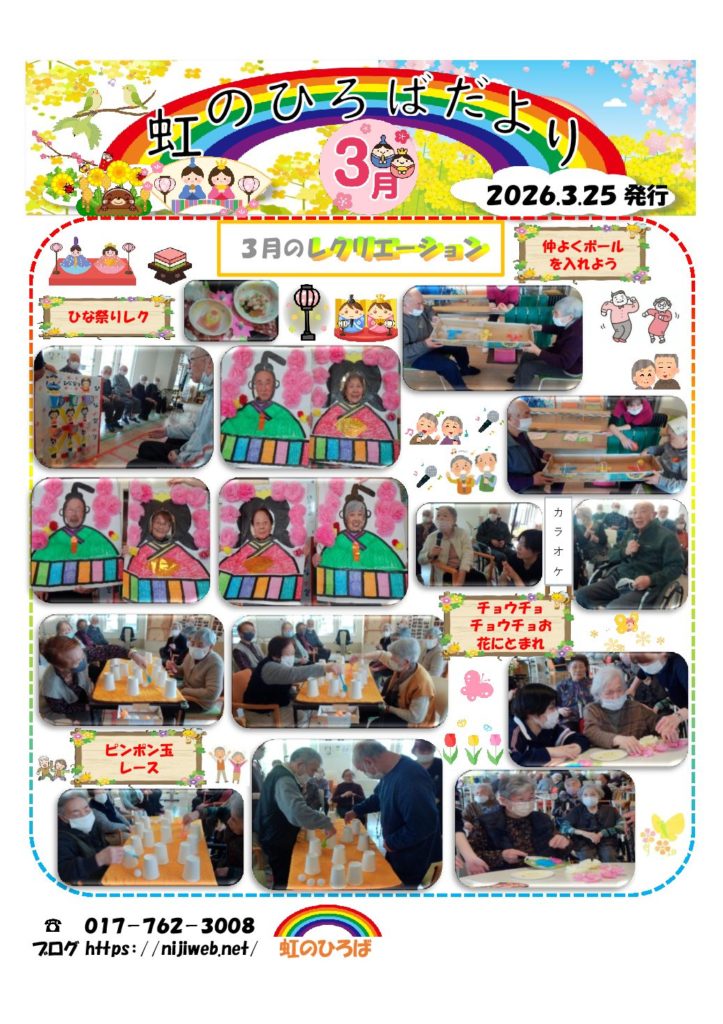 あんなに積もっていた雪も・・・時期がくれば消えていくんですね~・・・ 消えるとなると早いもので至る所で春めいてきました(^^♪ 早くもっと暖かくな~れ~(笑) 虹のひろばの3月のイベントレクは世間にならって『ひな祭りレク […] -