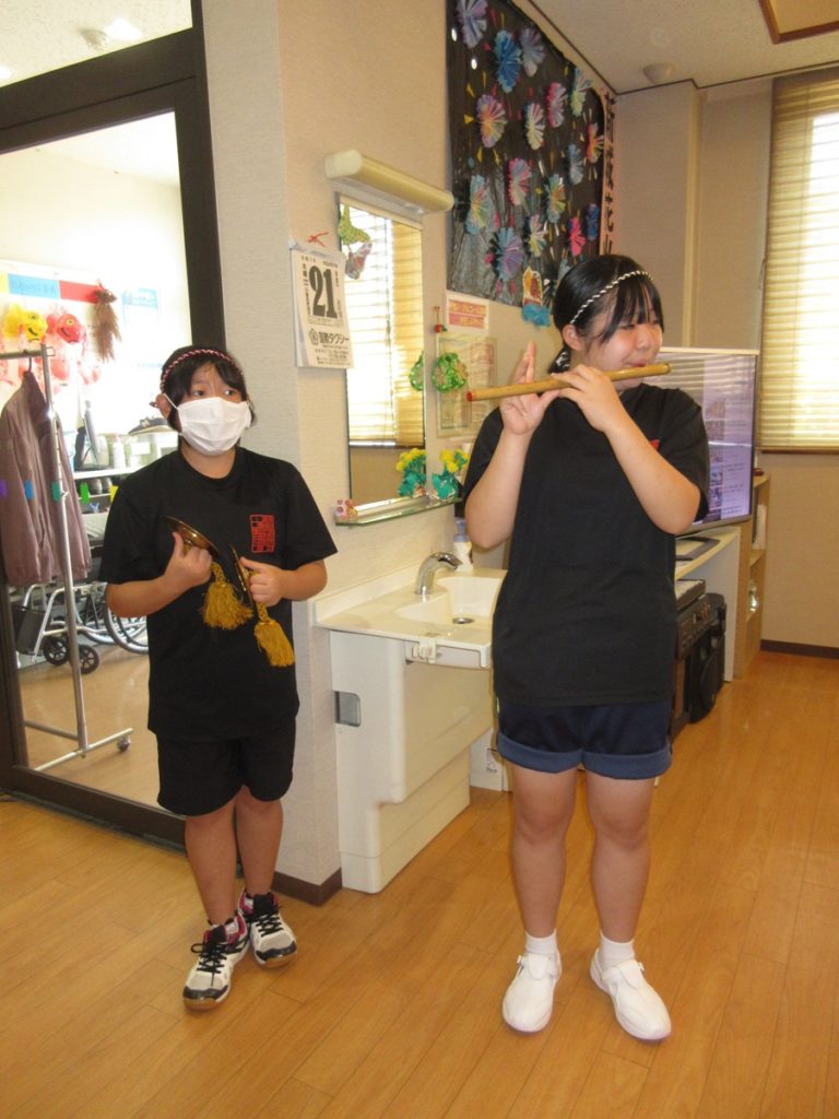そしてお神輿の入場です 職員のお子さんたちが囃子方として参加してくれました