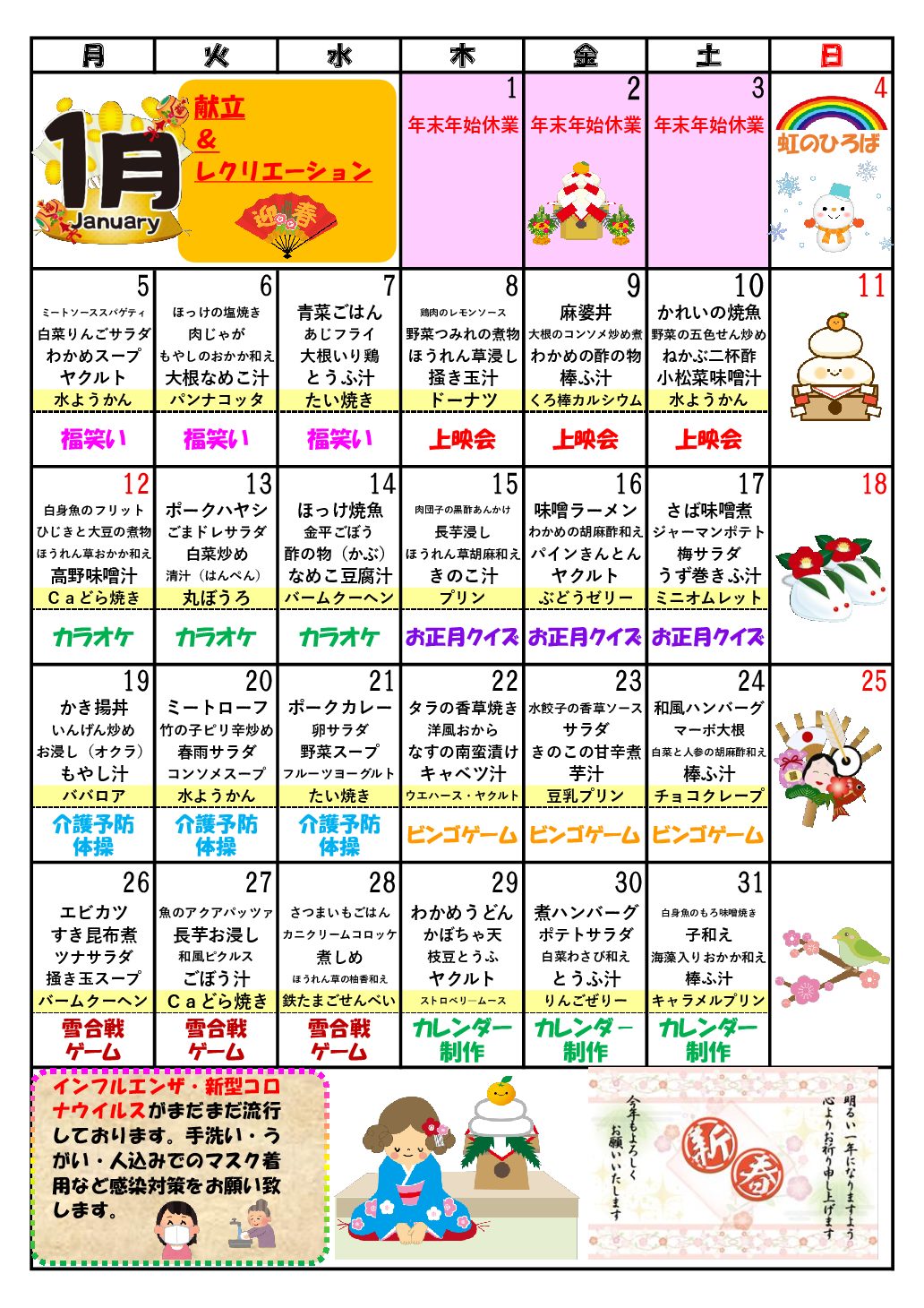 虹のひろばカレンダー2026年1月