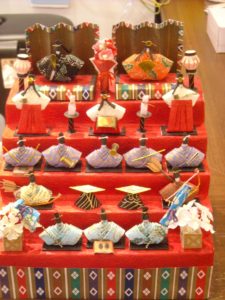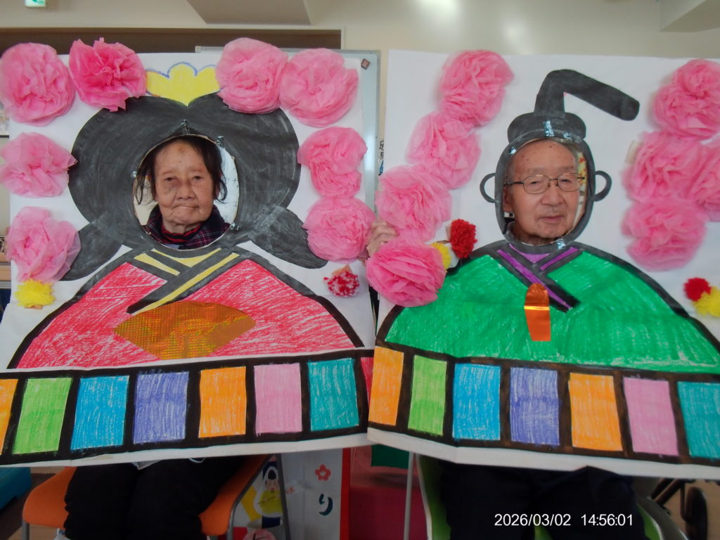 記念撮影をパチリと行いました。ご家庭で並んでいる雛飾りに負けない出来栄えだと思います♫